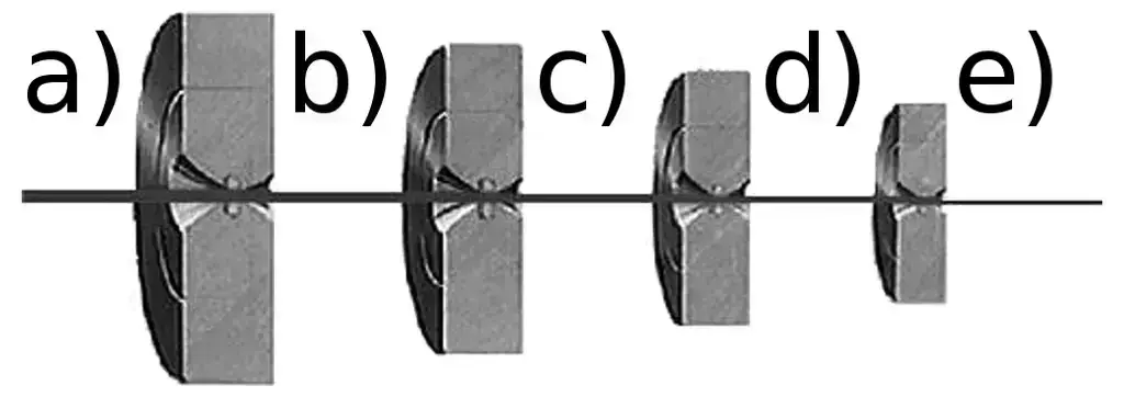 Fig. 2. Representação do processo de trefilação: à medida que o fio passa por cada fieira, seu diâmetro diminui e seu número AWG aumenta.